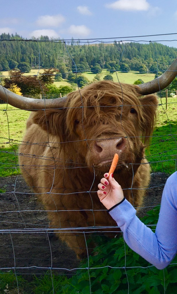 Mas no caminho fizemos uma estratégica parada para interagir com as “Highland Cows”. As vaquinhas são muito dóceis e um charme com aquela franjinha típica.