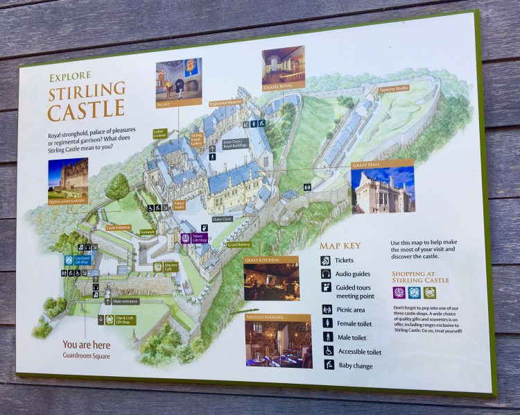 Nossa última atração turística foi o Castelo de Stirling. Um dos lares favoritos dos reis escoceses, foi foco das batalhas mais importantes nas Guerras da Independência da Escócia: Stirling Bridge (1297) e Bannackburn (1314). Enquanto residência real, o castelo foi lar de: James II, James III, James IV e Margaret Tudor (filha de Henry VII), James V e Mary of Guise, e Mary Queen of Scott.