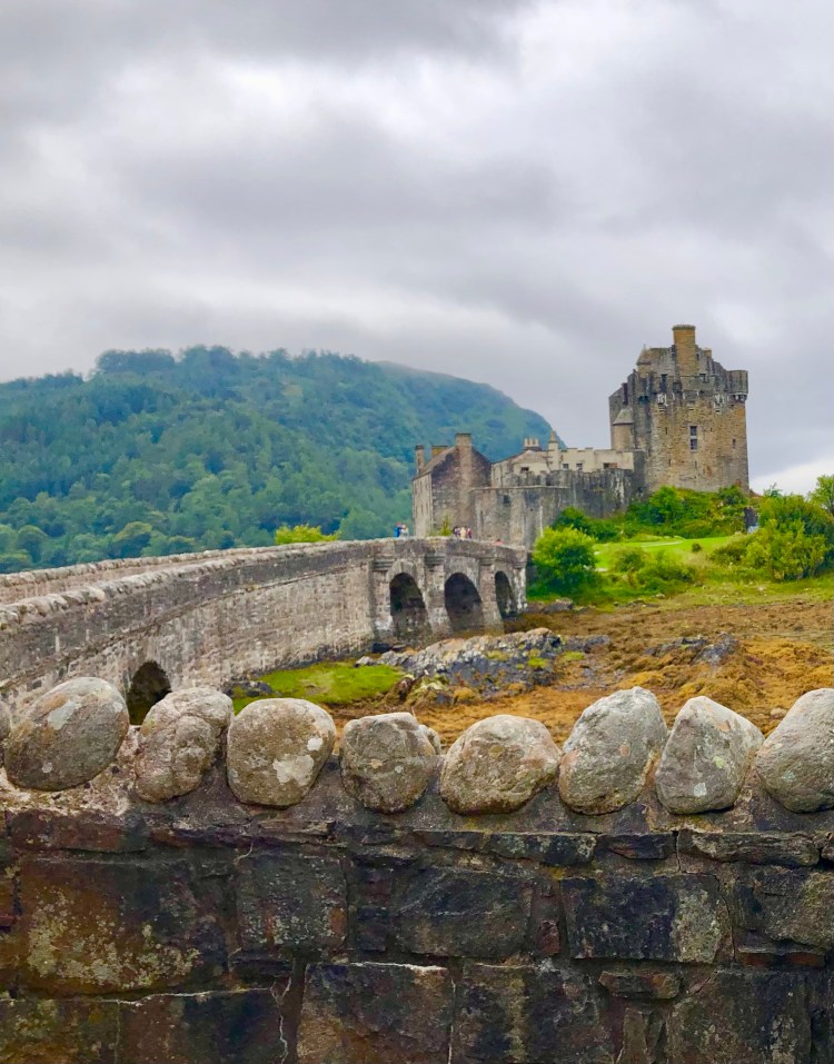 Depois seguimos no sentido Oeste para o Castelo de Elilean Donan. O lugar fica numa pequena ilha com acesso por uma ponte onde originalmente foi construído no século XIII. Muito tempo depois foi usado como fortaleza do Clã Mackenzie e, seus aliados, o Clã MacRae. Mas também durante a Revolução Jacobita foi destruído por canhões de duas fragatas do governo inglês. teve importância histórica no levante Jacobita. De 1912 a 1932 o castelo foi então reconstruído pelo Tenente-Coronel John MacRae-Gilstrap e está aberto para visitação.