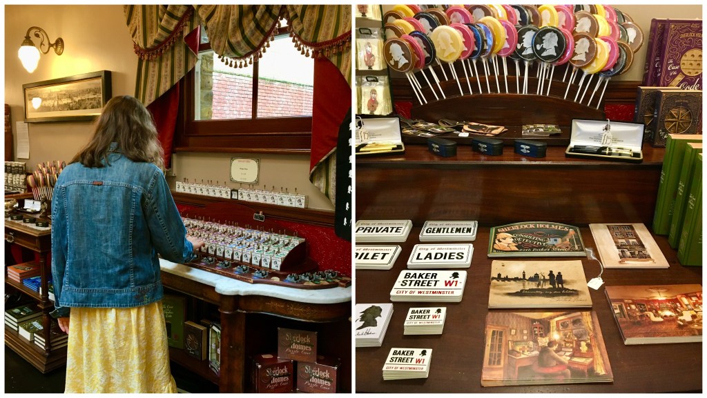 O museu do Sherlock Holmes fica no famoso endereço 221B Baker Street, London. O prédio é bem pequeno e retrata com autenticidade os detalhes da época do brilhante detetive. Há réplicas dos cômodos e vários itens de decoração em referência aos contos de Sir Arthur Conan Doyle. No térreo, está a loja de presentes com decoração impecável. Se você é grande fã ou admirador da história, acho que vale a visita, valeu pra mim!