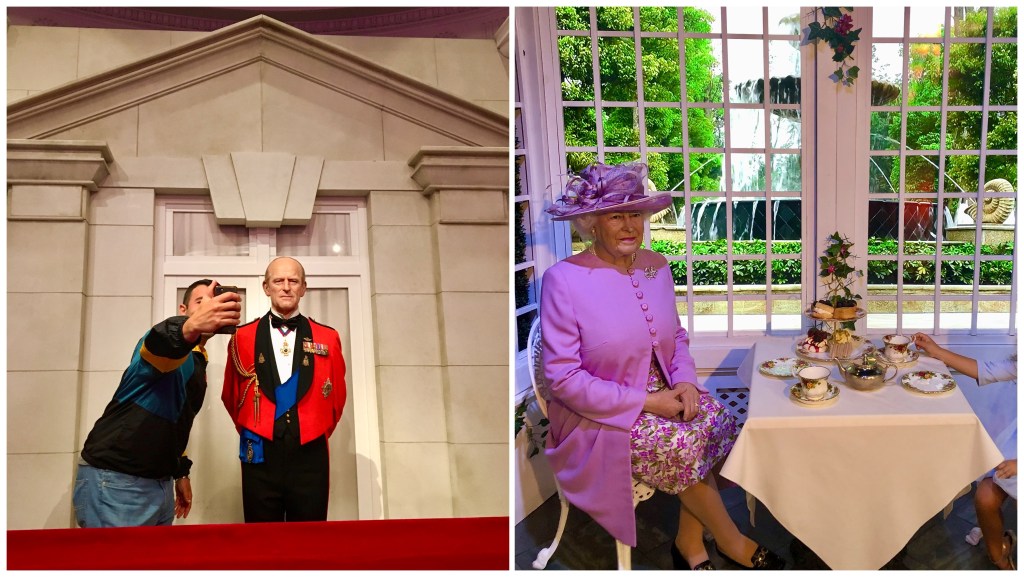 A escultora francesa Marie Tussaud fundou em Londres o museu de cera que se tornou o primeiro dos inúmeros museus Madame Tussaud’s espalhados pelo mundo. As esculturas são fantásticas, super realísticas e impressionantes. Para mim, o destaque é a família real britânica. Nessa área, não é permitido usar sua câmera ou celular, apenas tirar as fotos oficiais que, claro, você precisa comprar. Mas lá no finalzinho, quase na saída, você consegue tirar uma foto a rainha Elizabeth II.
