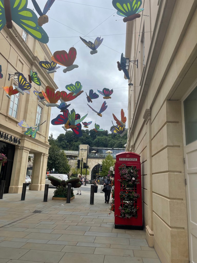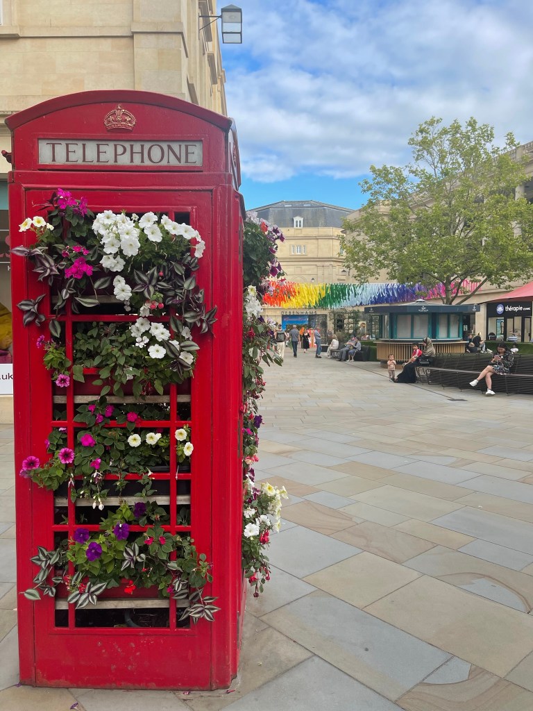 Como ponto de partida, recomendo essa clássica e modificada cabine telefônica (que já pode estar diferente agora) que fica no centro comercial de Bath com lojas como Apple, Zara e H&M.