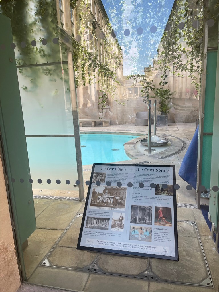 Seguido à Bath Street, você encontrará na bifurcação o The Cross Bath, um pequeno santuário, com sua fonte considerada sagrada, que foi local de adoração e oferendas dos Celtas à deusa Sulis. Os romanos também passaram por ali, adorando à deusa que para os romanos se chamava Minerva. Atualmente, o local é cercado e pertence à rede Thermae Bath Spa e pode até ser usado mediante reserva (saiba mais aqui). As instalações mais modernas, com day-use e outras opções de um verdadeiro spa, ficam em frente em uma imponente entrada de vidro no Thermae Bath Spa.