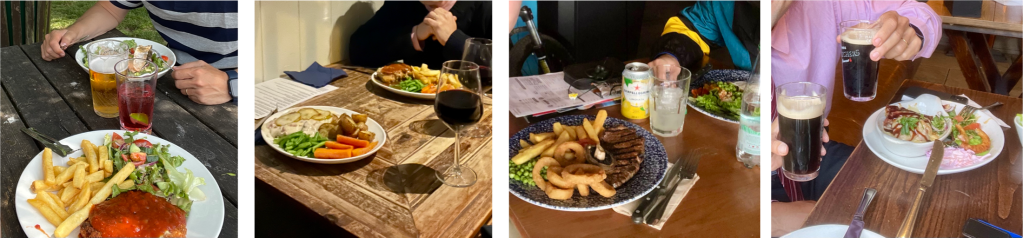 Os ingleses não tem o hábito de comer uma refeição durante o almoço (talvez por isso chamado de lunch) e essa característica de reflete nos pratos disponíveis nos pubs.
